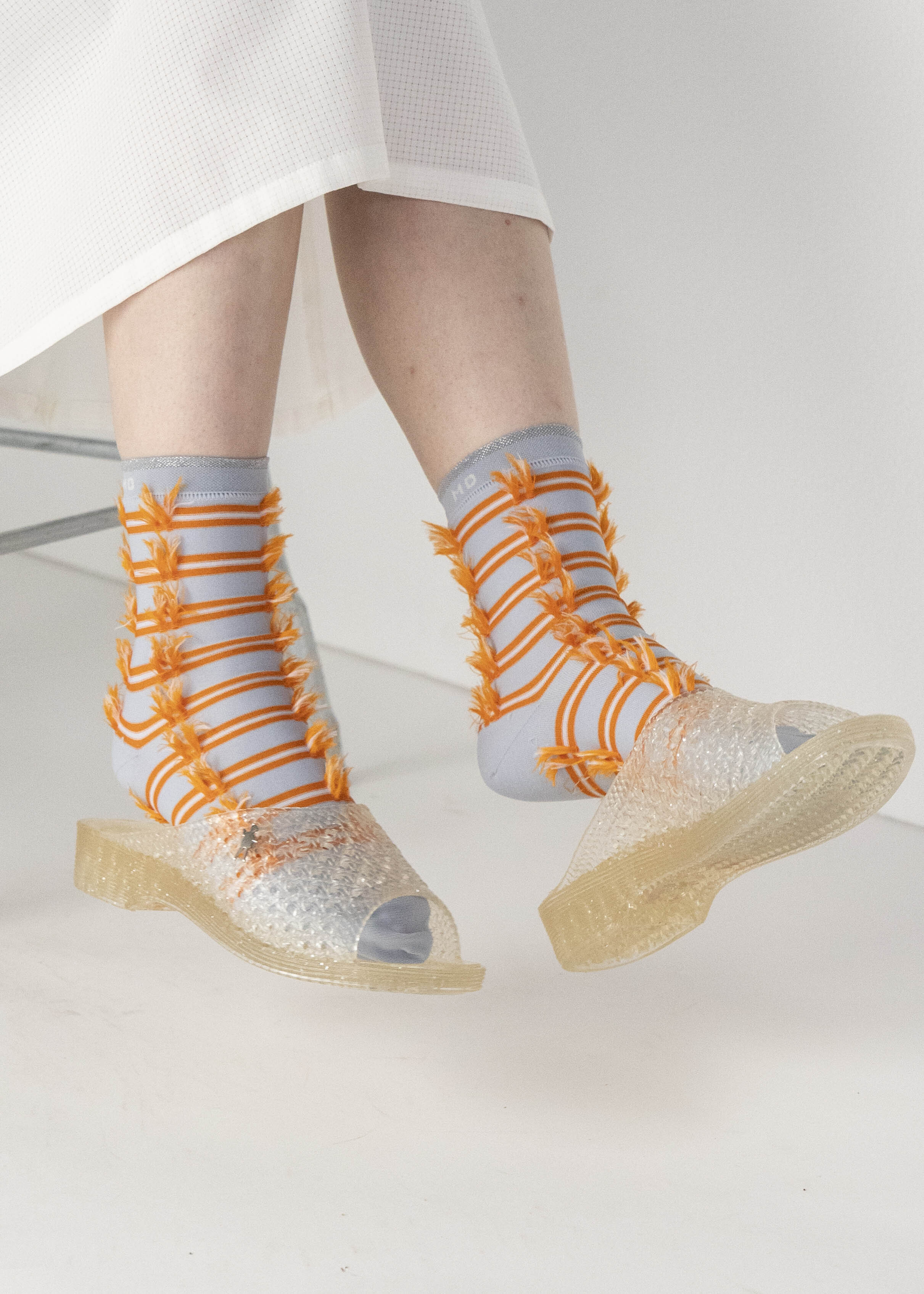 • 襪子造型立體,周圍纏繞著流蘇絲帶