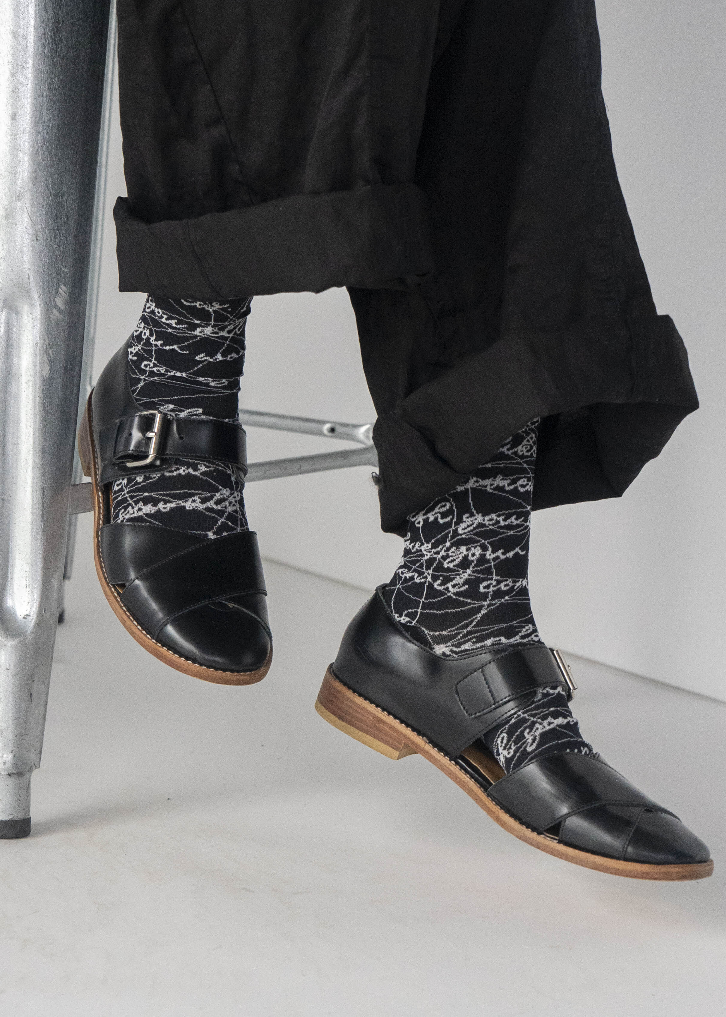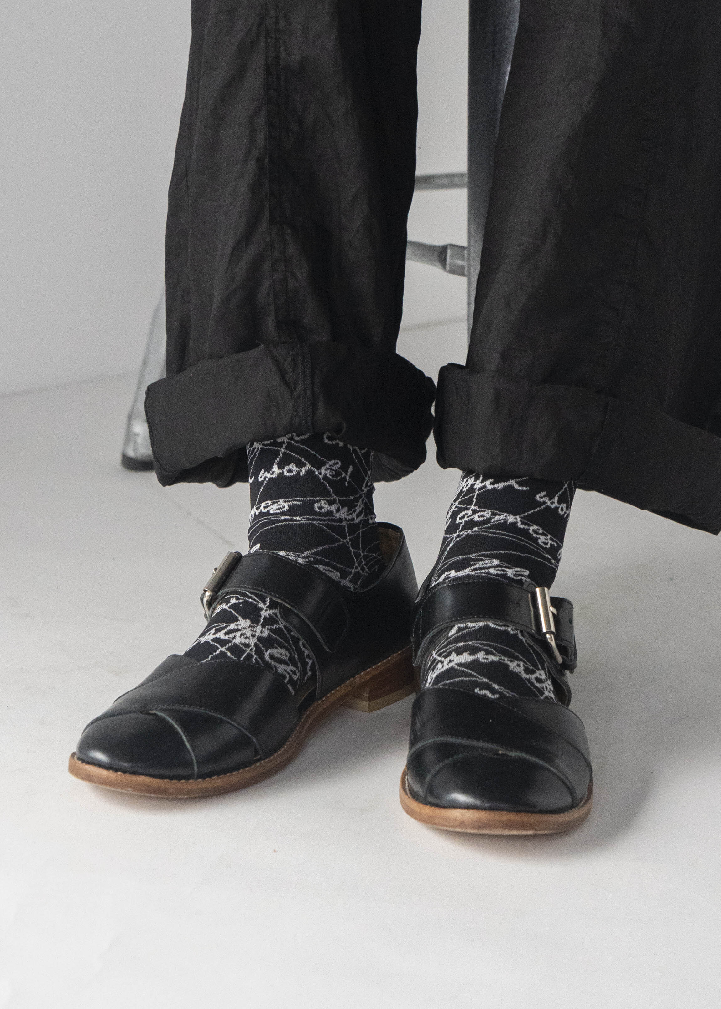 • 此圖案運用草書字體及其筆觸線條,並以提花工藝呈現