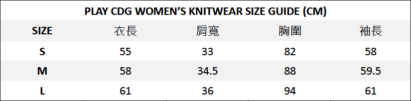 CDG PLAY T-SHIRT不得退換貨,如有尺寸不合疑慮,請先連絡客服人員