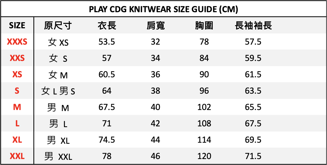 CDG PLAY T-SHIRT不得退換貨,如有尺寸不合疑慮,請先連絡客服人員