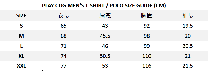CDG PLAY T-SHIRT不得退換貨,如有尺寸不合疑慮,請先連絡客服人員