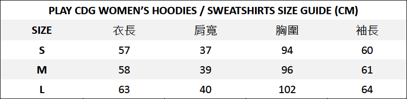 CDG PLAY T-SHIRT不得退換貨,如有尺寸不合疑慮,請先連絡客服人員