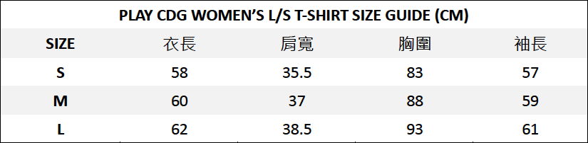 CDG PLAY T-SHIRT不得退換貨,如有尺寸不合疑慮,請先連絡客服人員